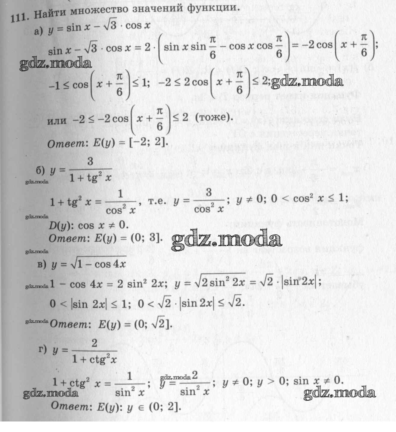 ГДЗ решение к заданию № 111 Алгебра и начала математического анализа 10-11 класс Колмогоров А.Н. Просвещение 2008 ФГОС бесплатно на гдз.мода!