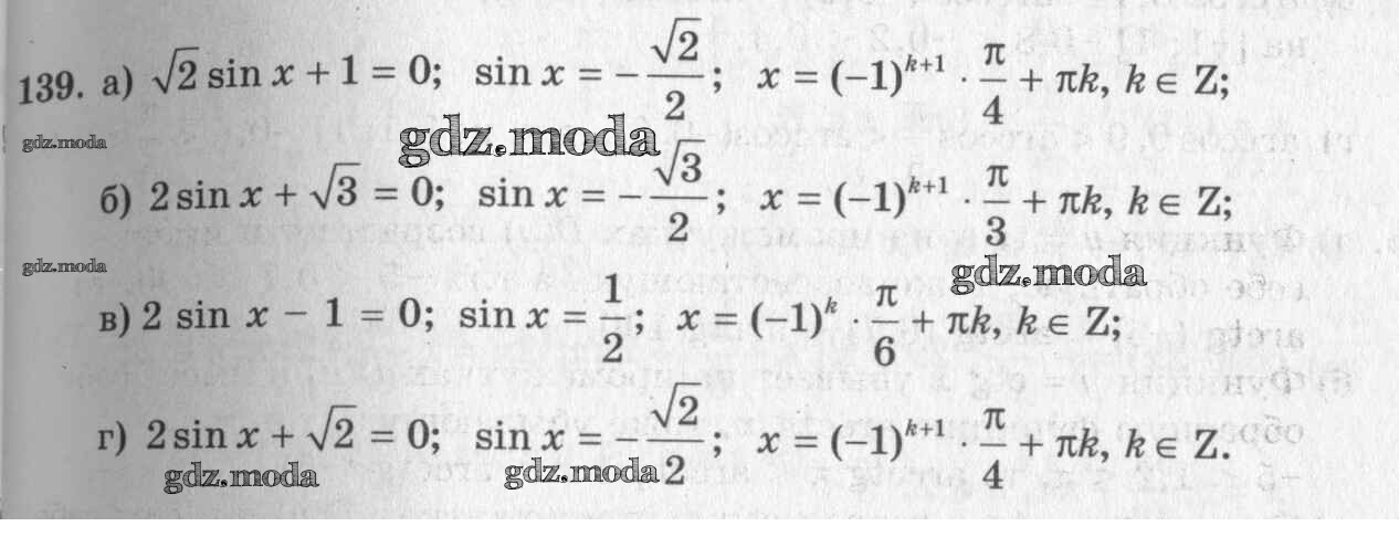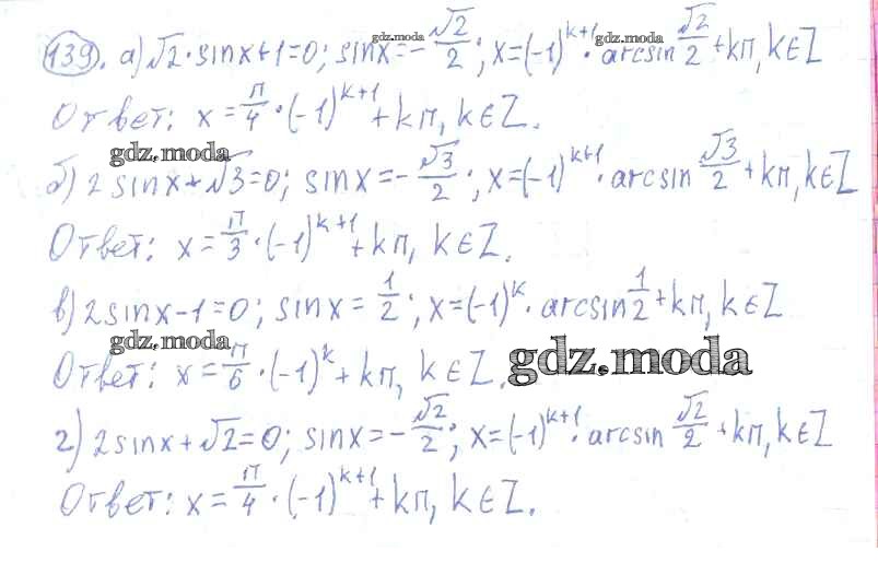 ГДЗ решение к заданию № 139 Алгебра и начала математического анализа 10-11 класс Колмогоров А.Н. Просвещение 2008 ФГОС бесплатно на гдз.мода!