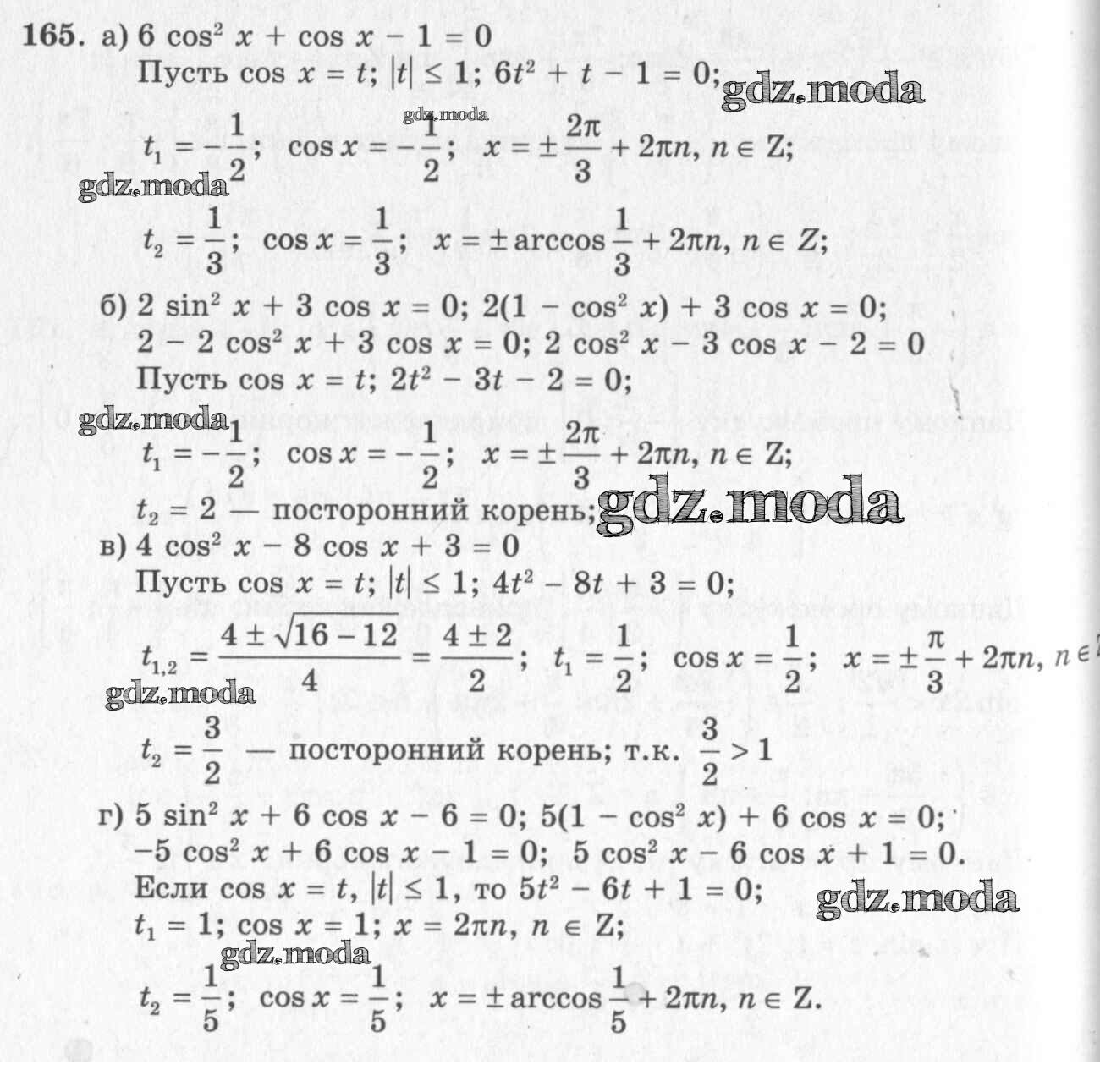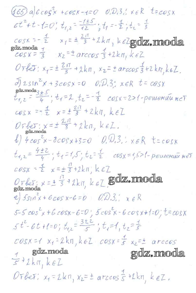 ГДЗ решение к заданию № 165 Алгебра и начала математического анализа 10-11 класс Колмогоров А.Н. Просвещение 2008 ФГОС бесплатно на гдз.мода!