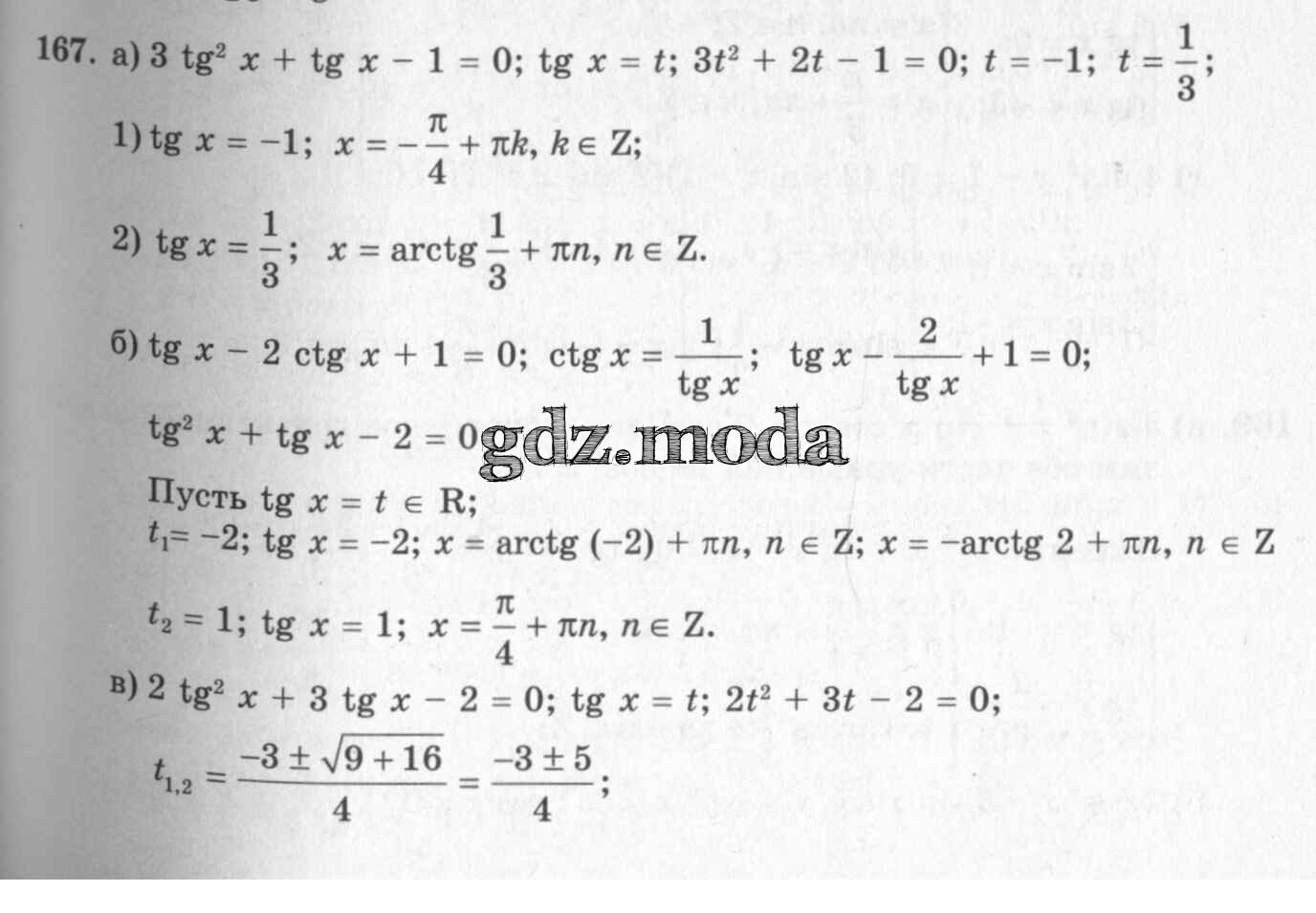 ГДЗ решение к заданию № 167 Алгебра и начала математического анализа 10-11 класс Колмогоров А.Н. Просвещение 2008 ФГОС бесплатно на гдз.мода!