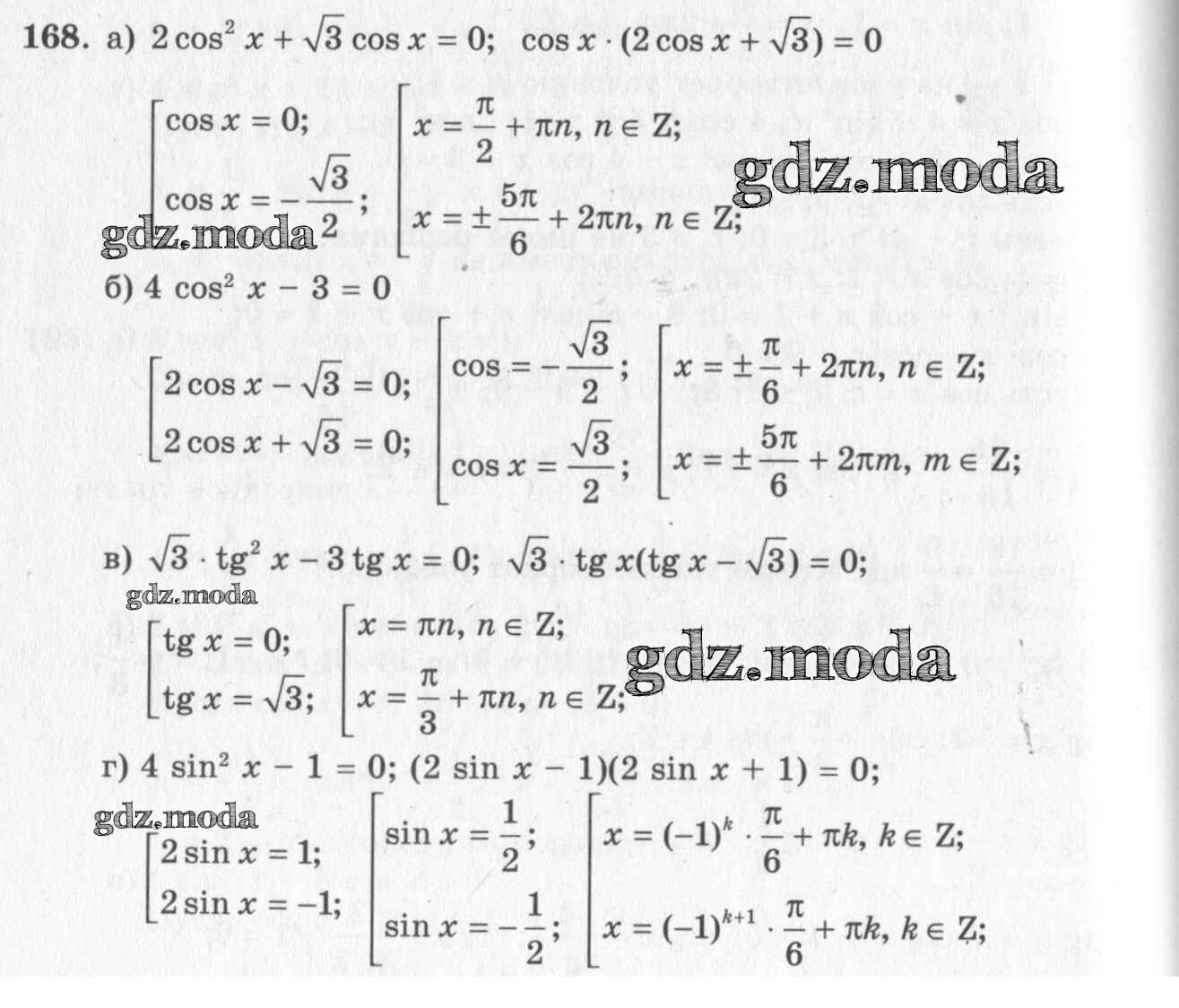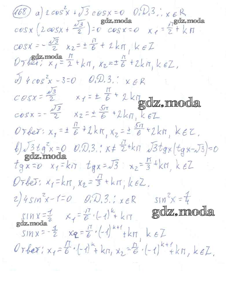 ГДЗ решение к заданию № 168 Алгебра и начала математического анализа 10-11 класс Колмогоров А.Н. Просвещение 2008 ФГОС бесплатно на гдз.мода!