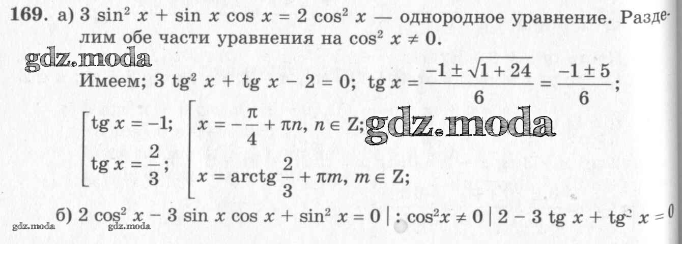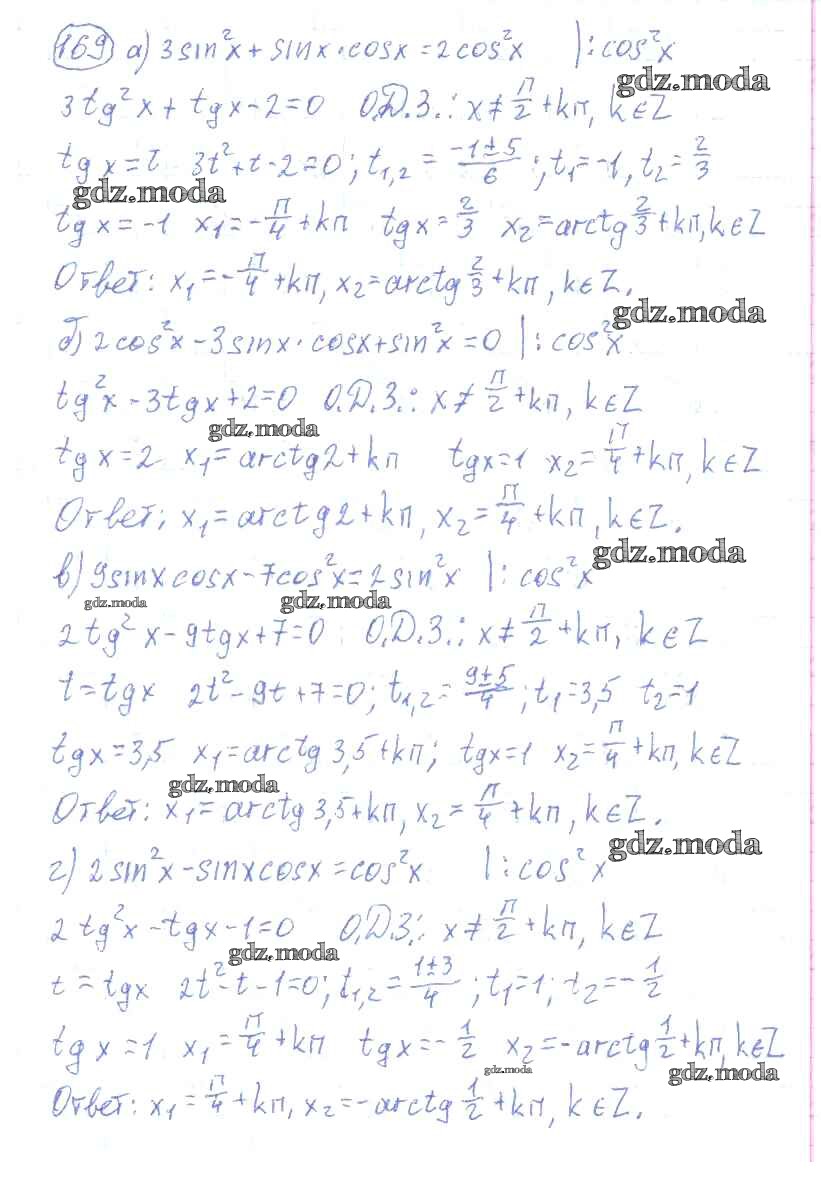 ГДЗ решение к заданию № 169 Алгебра и начала математического анализа 10-11 класс Колмогоров А.Н. Просвещение 2008 ФГОС бесплатно на гдз.мода!