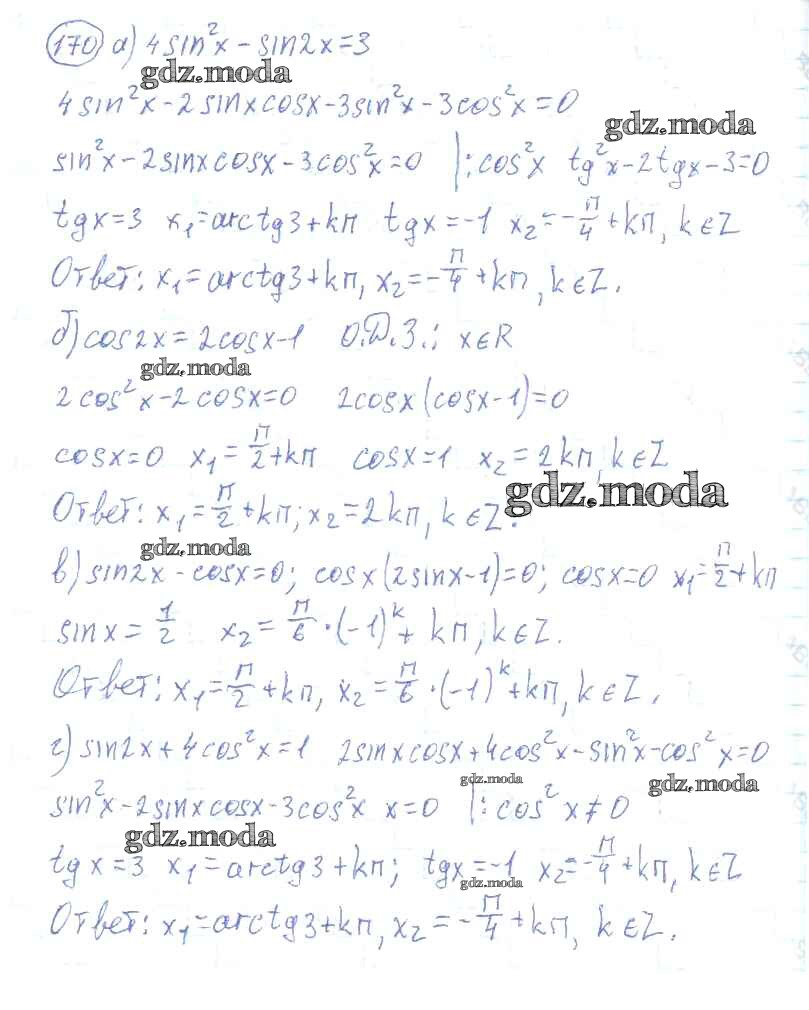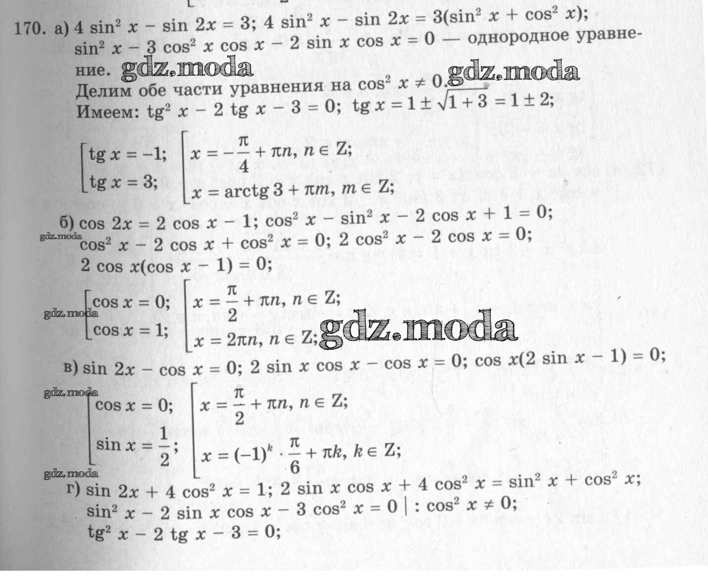 ГДЗ решение к заданию № 170 Алгебра и начала математического анализа 10-11 класс Колмогоров А.Н. Просвещение 2008 ФГОС бесплатно на гдз.мода!