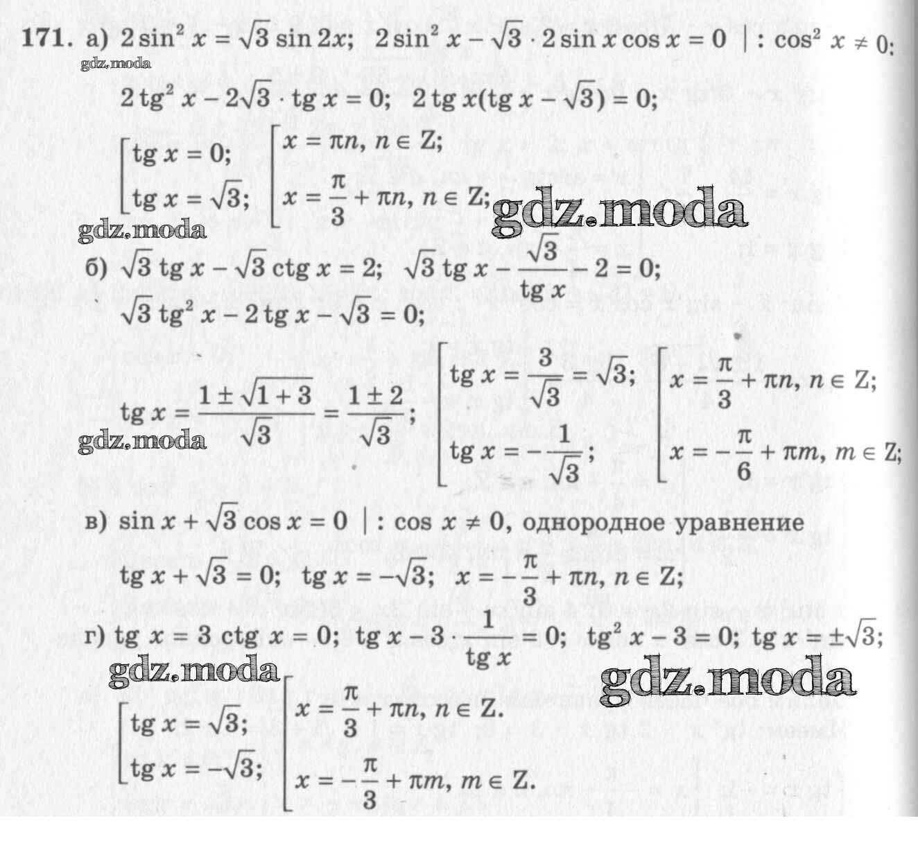 ГДЗ решение к заданию № 171 Алгебра и начала математического анализа 10-11 класс Колмогоров А.Н. Просвещение 2008 ФГОС бесплатно на гдз.мода!