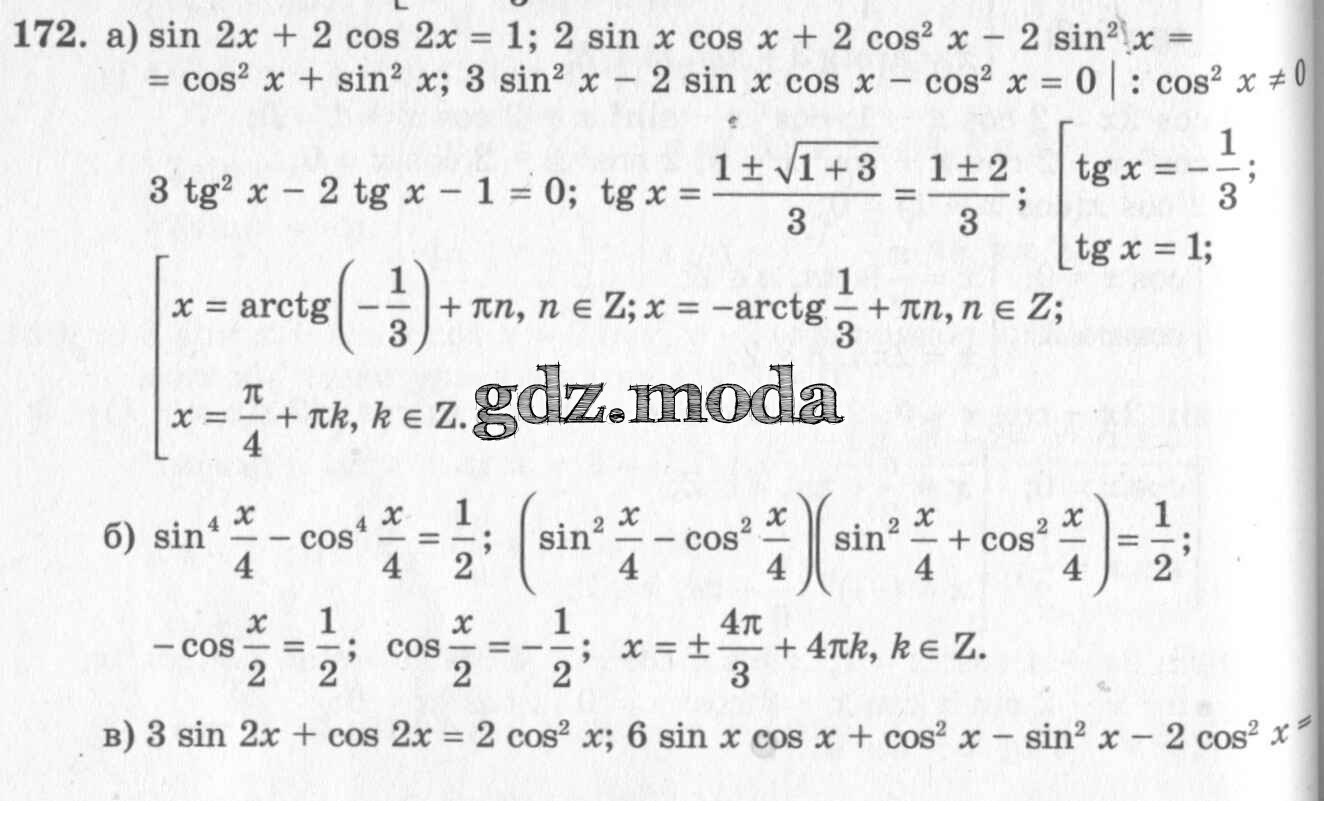 ГДЗ решение к заданию № 172 Алгебра и начала математического анализа 10-11 класс Колмогоров А.Н. Просвещение 2008 ФГОС бесплатно на гдз.мода!
