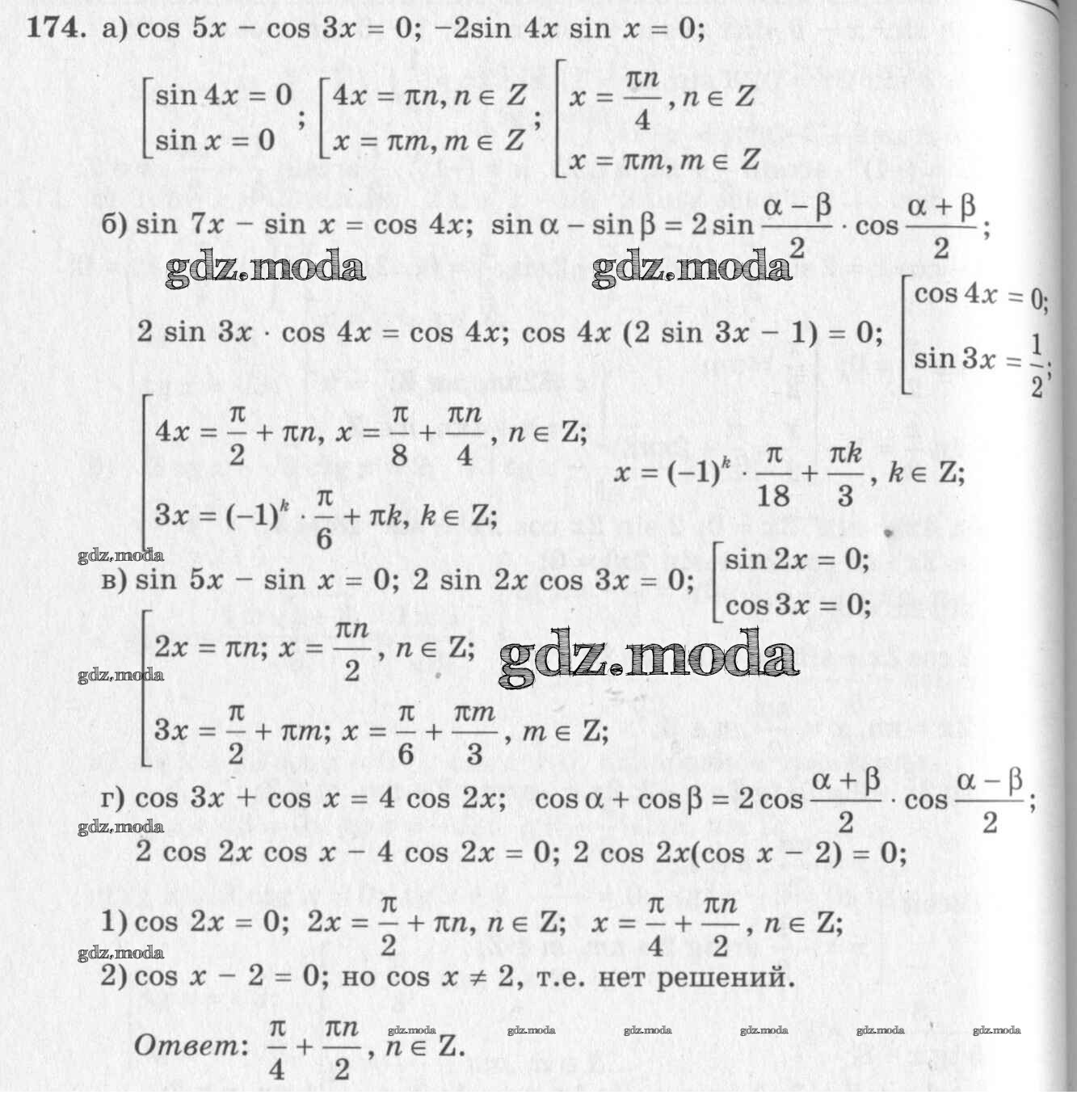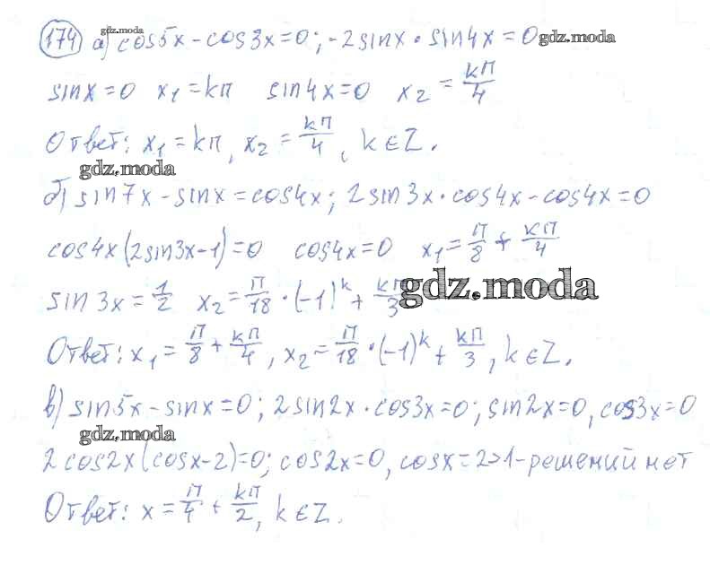 ГДЗ решение к заданию № 174 Алгебра и начала математического анализа 10-11 класс Колмогоров А.Н. Просвещение 2008 ФГОС бесплатно на гдз.мода!