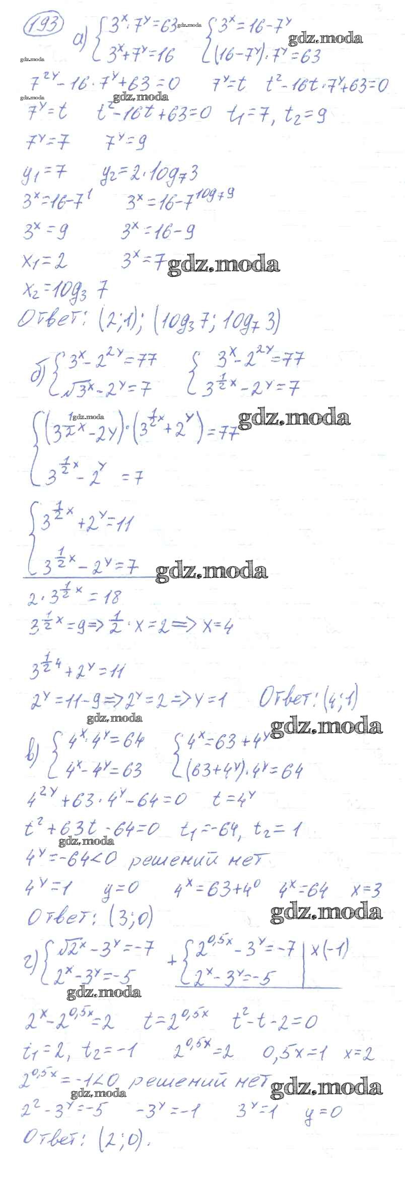 ГДЗ решение к заданию № 193 Алгебра и начала математического анализа 10-11 класс Колмогоров А.Н. Просвещение 2008 ФГОС бесплатно на гдз.мода!