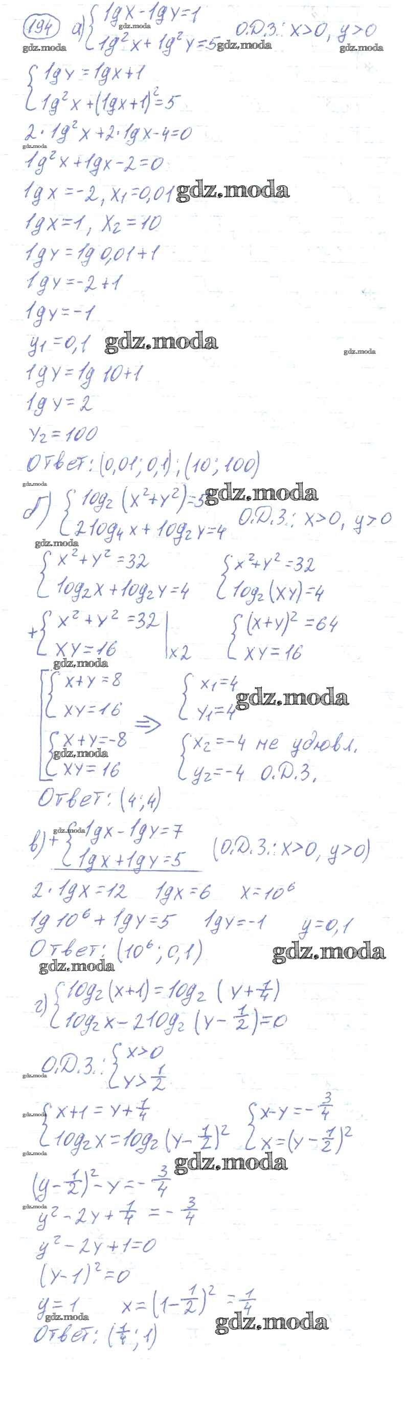 ГДЗ решение к заданию № 194 Алгебра и начала математического анализа 10-11 класс Колмогоров А.Н. Просвещение 2008 ФГОС бесплатно на гдз.мода!