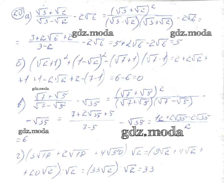 ГДЗ решение к заданию № 20 Алгебра и начала математического анализа 10-11 класс Колмогоров А.Н. Просвещение 2008 ФГОС бесплатно на гдз.мода!