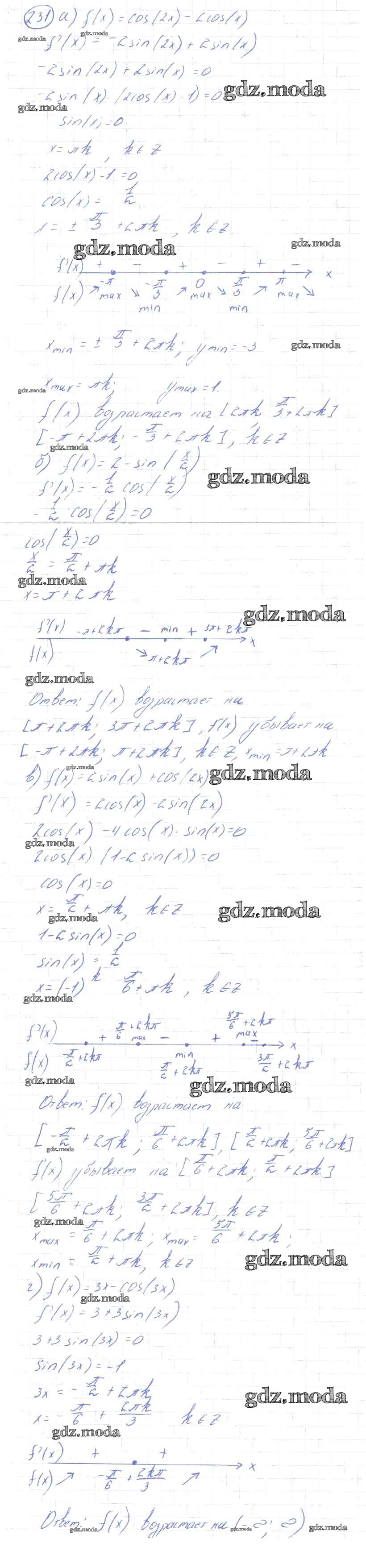 ГДЗ решение к заданию № 231 Алгебра и начала математического анализа 10-11 класс Колмогоров А.Н. Просвещение 2008 ФГОС бесплатно на гдз.мода!
