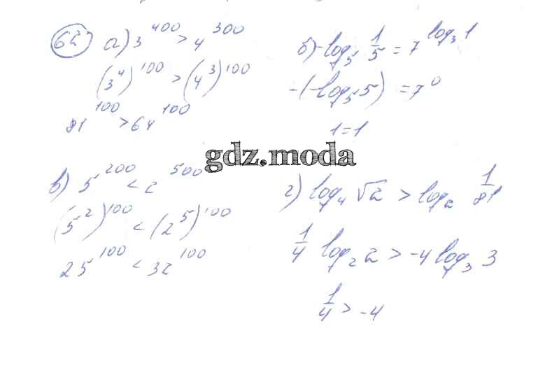 ОТВЕТ на задание № 62 Учебник по Алгебре 10-11 класс Колмогоров