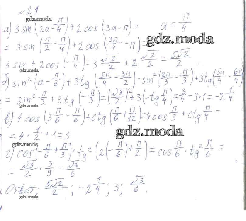 ГДЗ решение к заданию № 21 Алгебра и начала математического анализа 10-11 класс Колмогоров А.Н. Просвещение 2008 ФГОС бесплатно на гдз.мода!