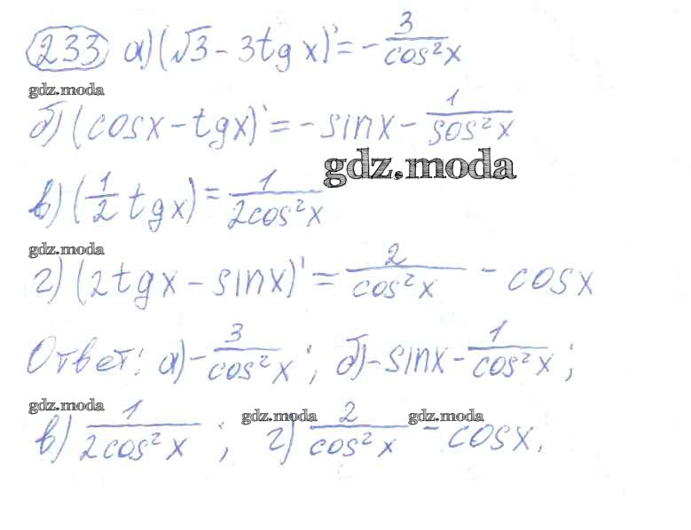 ГДЗ решение к заданию № 233 Алгебра и начала математического анализа 10-11 класс Колмогоров А.Н. Просвещение 2008 ФГОС бесплатно на гдз.мода!
