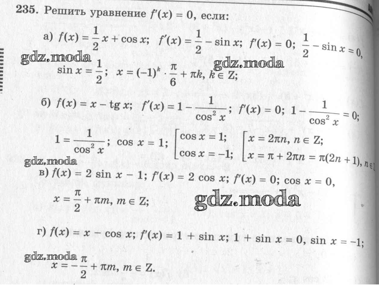 ГДЗ решение к заданию № 235 Алгебра и начала математического анализа 10-11 класс Колмогоров А.Н. Просвещение 2008 ФГОС бесплатно на гдз.мода!