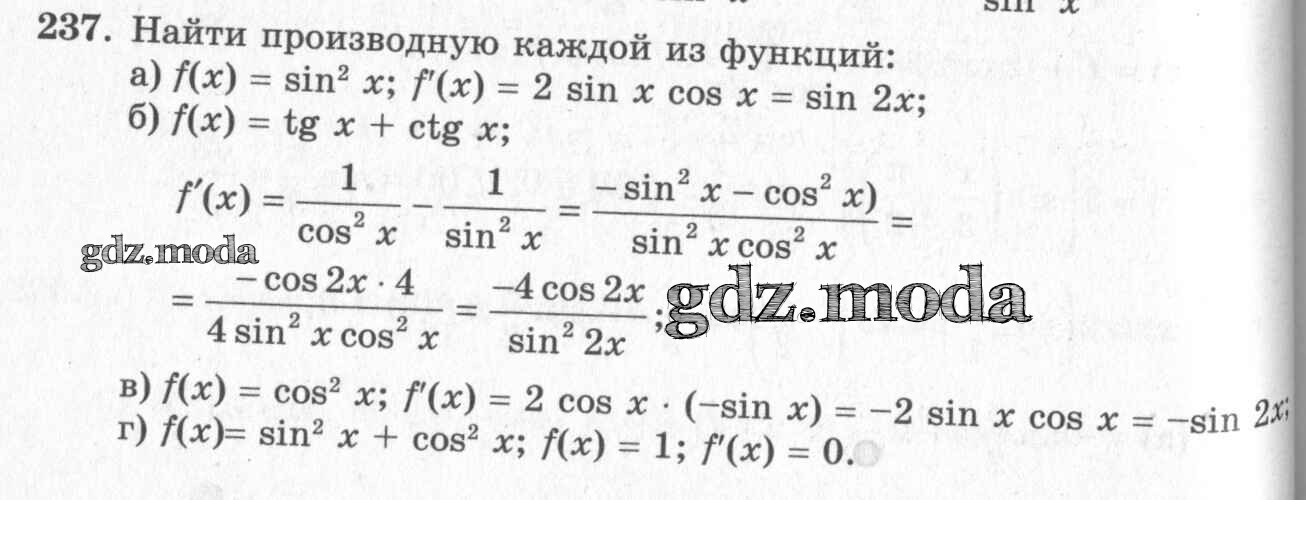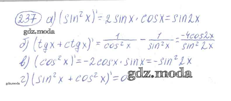 ГДЗ решение к заданию № 237 Алгебра и начала математического анализа 10-11 класс Колмогоров А.Н. Просвещение 2008 ФГОС бесплатно на гдз.мода!