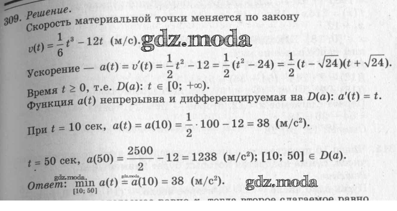 ГДЗ решение к заданию № 309 Алгебра и начала математического анализа 10-11 класс Колмогоров А.Н. Просвещение 2008 ФГОС бесплатно на гдз.мода!