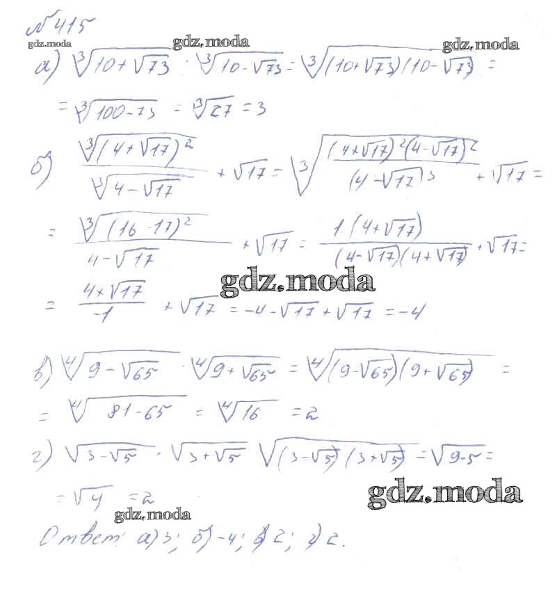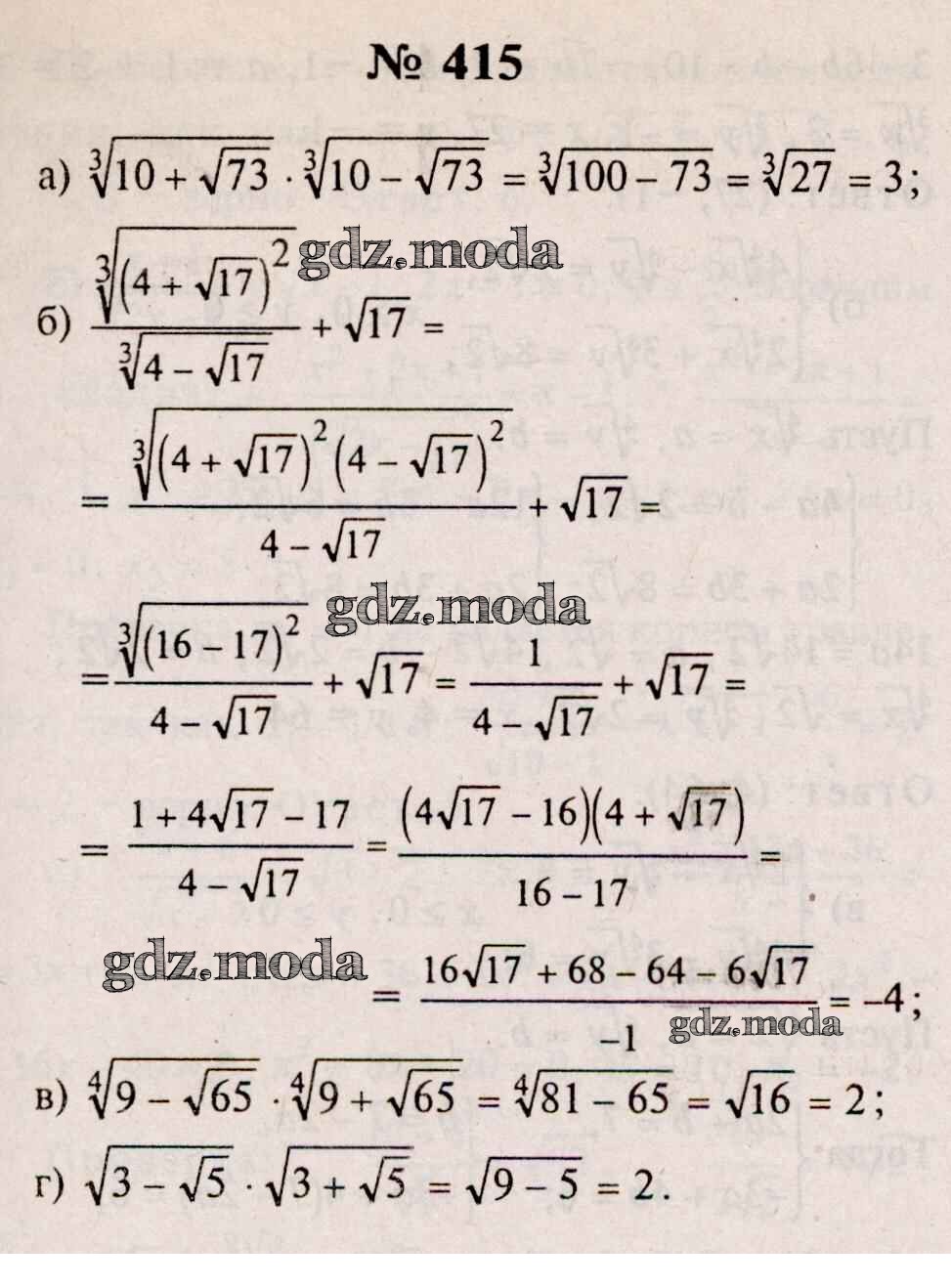 ОТВЕТ на задание № 415 Учебник по Алгебре 10-11 класс Колмогоров