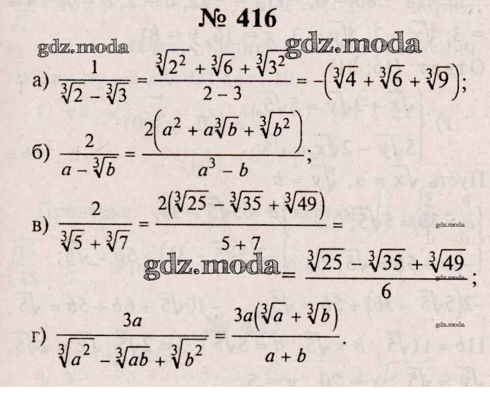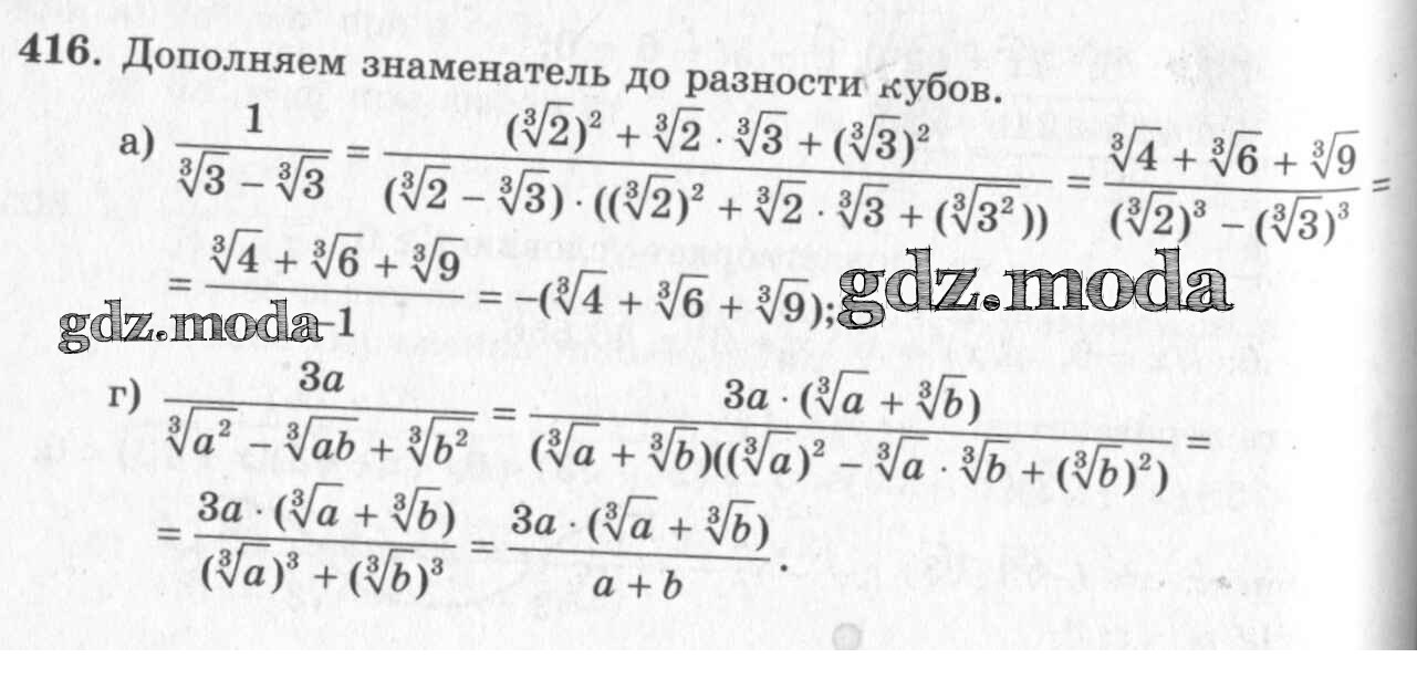ГДЗ решение к заданию № 416 Алгебра и начала математического анализа 10-11 класс Колмогоров А.Н. Просвещение 2008 ФГОС бесплатно на гдз.мода!