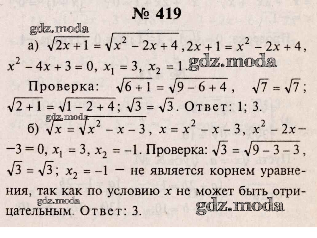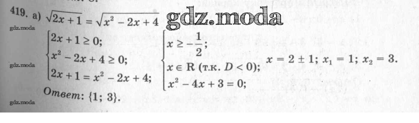 ОТВЕТ на задание № 419 Учебник по Алгебре 10-11 класс Колмогоров