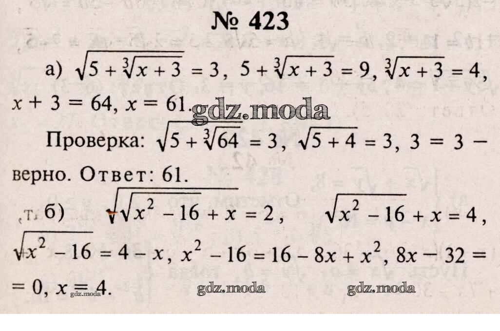 ОТВЕТ на задание № 423 Учебник по Алгебре 10-11 класс Колмогоров