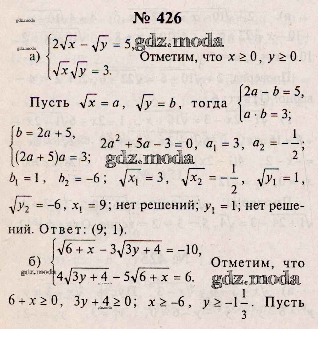 ОТВЕТ на задание № 426 Учебник по Алгебре 10-11 класс Колмогоров
