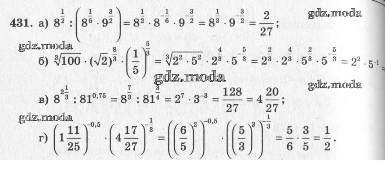 ГДЗ решение к заданию № 431 Алгебра и начала математического анализа 10-11 класс Колмогоров А.Н. Просвещение 2008 ФГОС бесплатно на гдз.мода!
