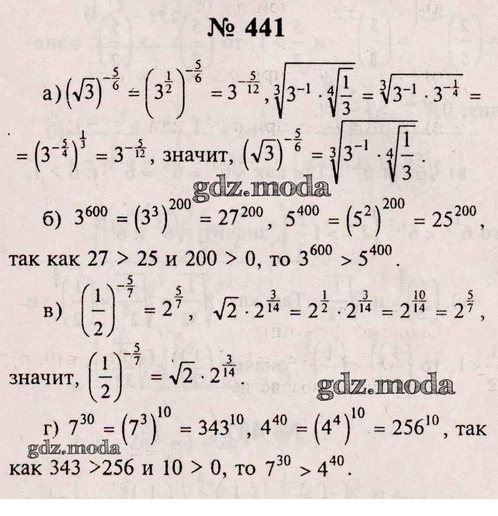 ОТВЕТ на задание № 441 Учебник по Алгебре 10-11 класс Колмогоров
