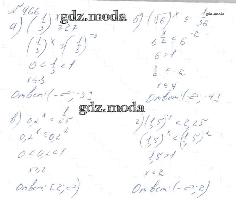 ОТВЕТ на задание № 466 Учебник по Алгебре 10-11 класс Колмогоров