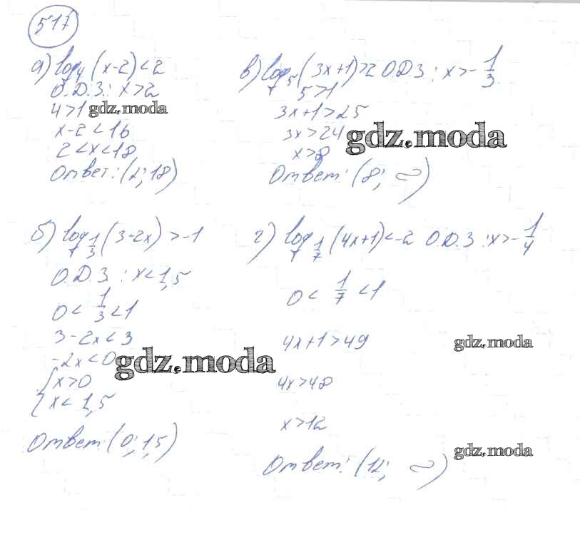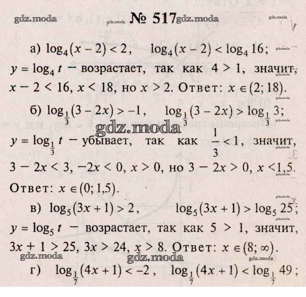 ГДЗ решение к заданию № 517 Алгебра и начала математического анализа 10-11 класс Колмогоров А.Н. Просвещение 2008 ФГОС бесплатно на гдз.мода!