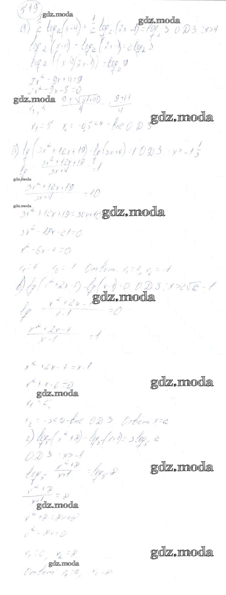 ГДЗ решение к заданию № 519 Алгебра и начала математического анализа 10-11 класс Колмогоров А.Н. Просвещение 2008 ФГОС бесплатно на гдз.мода!