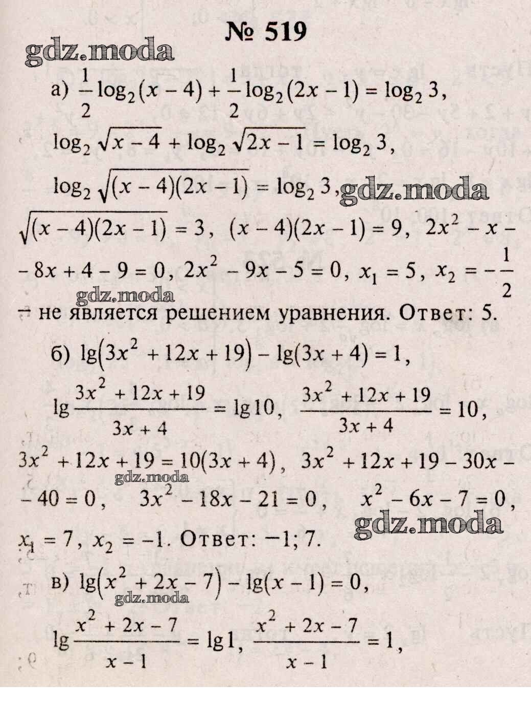 ОТВЕТ на задание № 519 Учебник по Алгебре 10-11 класс Колмогоров