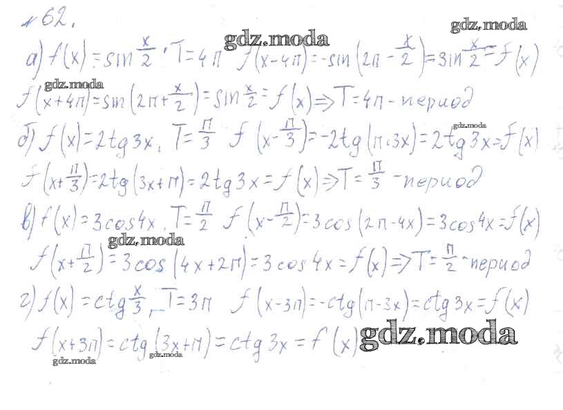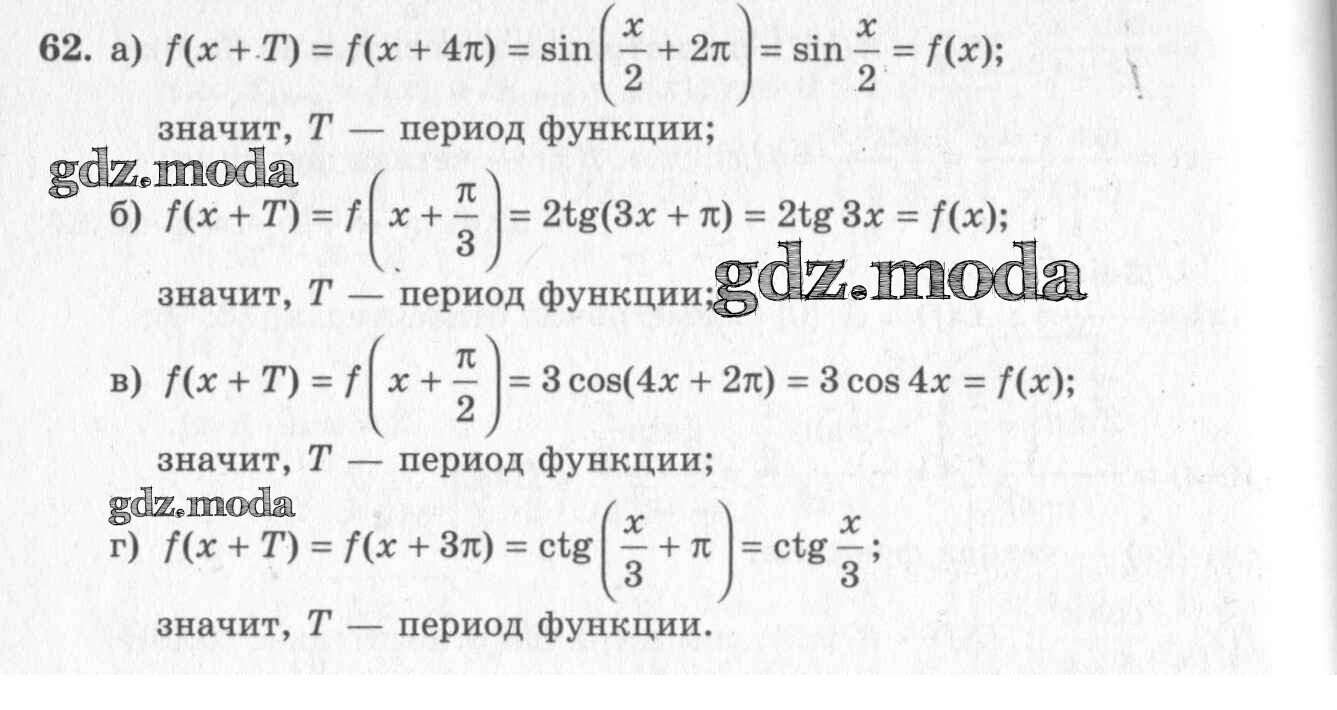 ГДЗ решение к заданию № 62 Алгебра и начала математического анализа 10-11 класс Колмогоров А.Н. Просвещение 2008 ФГОС бесплатно на гдз.мода!