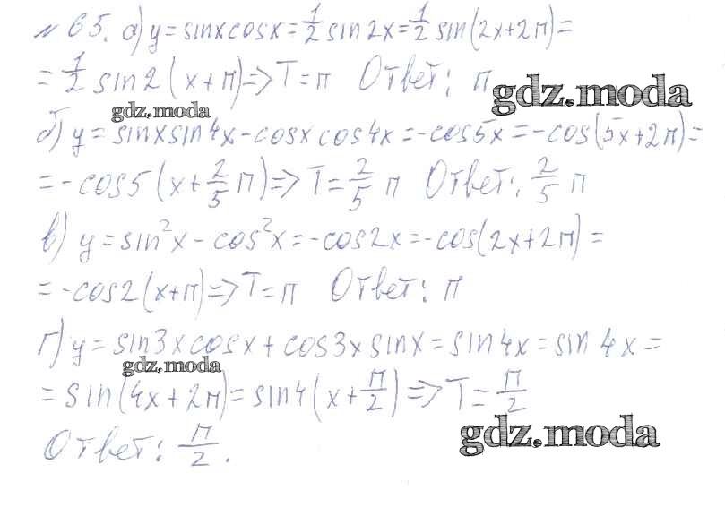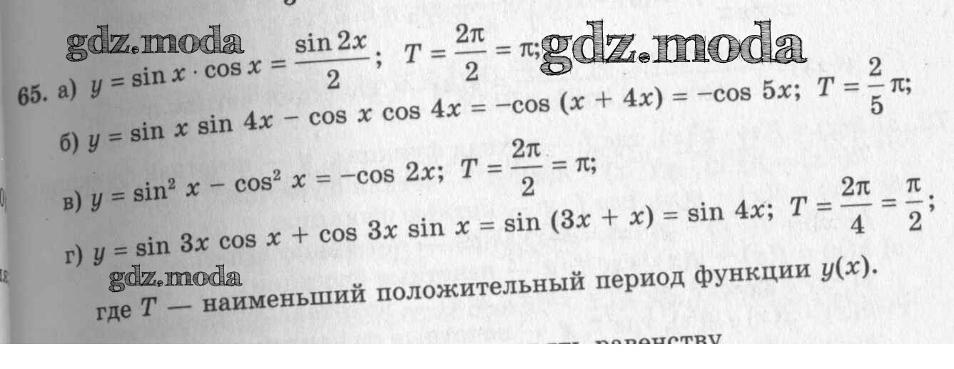 ГДЗ решение к заданию № 65 Алгебра и начала математического анализа 10-11 класс Колмогоров А.Н. Просвещение 2008 ФГОС бесплатно на гдз.мода!