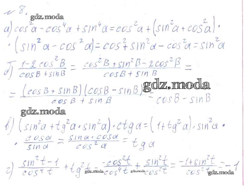 ГДЗ решение к заданию № 8 Алгебра и начала математического анализа 10-11 класс Колмогоров А.Н. Просвещение 2008 ФГОС бесплатно на гдз.мода!