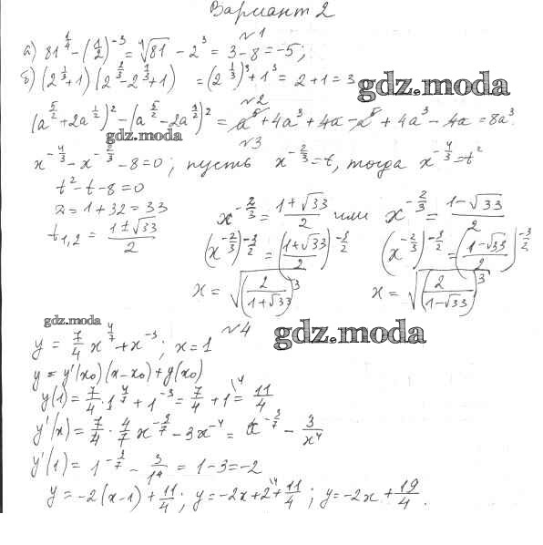 ОТВЕТ на задание № Вариант-2 Контрольные работы по Алгебре 11 класс Глизбург Базовый и углубленный уровень