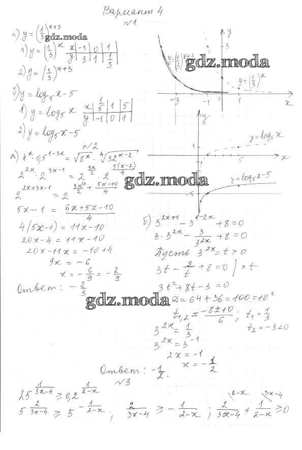 ГДЗ решение к заданию № Вариант-4 Алгебра 11 класс контрольные работы Базовый и Углубленный уровень Глизбург В.И. Мнемозина 2016 Базовый и углубленный уровень ФГОС бесплатно на гдз.мода!