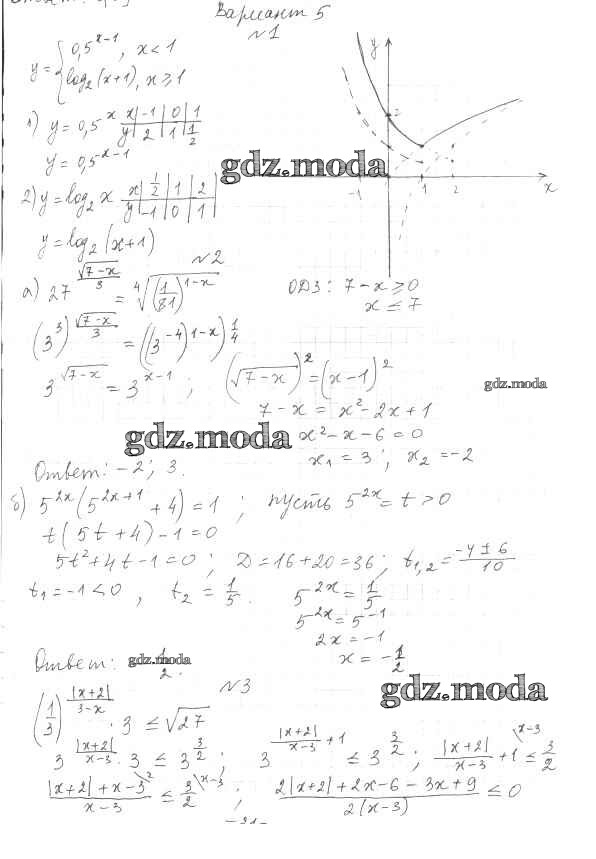 ОТВЕТ на задание № Вариант-5 Контрольные работы по Алгебре 11 класс Глизбург Базовый и углубленный уровень