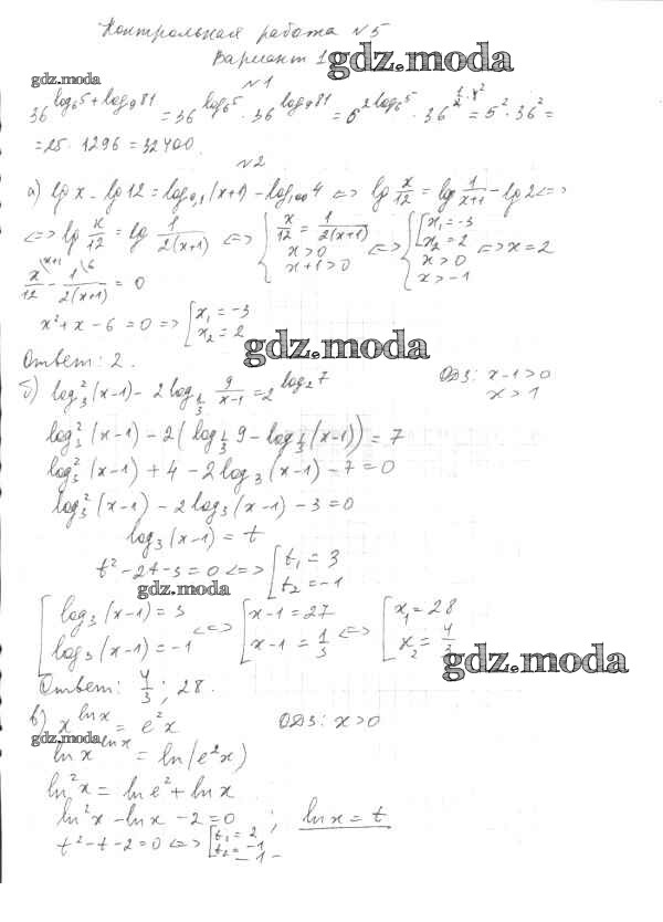 ГДЗ решение к заданию № Вариант-1 Алгебра 11 класс контрольные работы Базовый и Углубленный уровень Глизбург В.И. Мнемозина 2016 Базовый и углубленный уровень ФГОС бесплатно на гдз.мода!