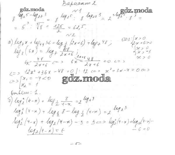 ГДЗ решение к заданию № Вариант-2 Алгебра 11 класс контрольные работы Базовый и Углубленный уровень Глизбург В.И. Мнемозина 2016 Базовый и углубленный уровень ФГОС бесплатно на гдз.мода!
