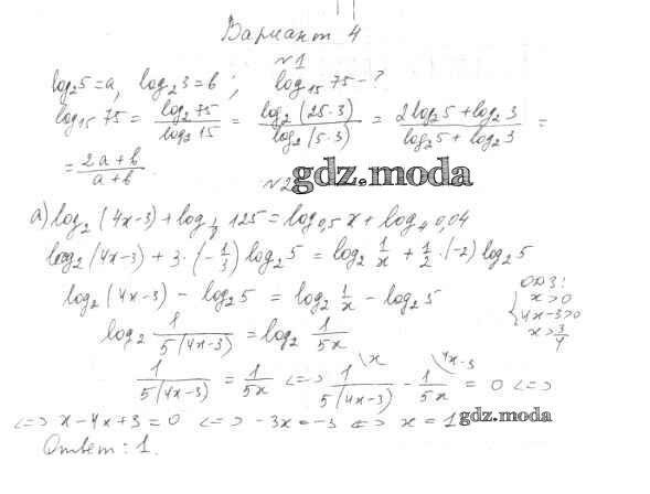 ГДЗ решение к заданию № Вариант-4 Алгебра 11 класс контрольные работы Базовый и Углубленный уровень Глизбург В.И. Мнемозина 2016 Базовый и углубленный уровень ФГОС бесплатно на гдз.мода!