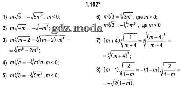 ОТВЕТ на задание № 1.102 Учебник по Алгебре 11 класс Кузнецова