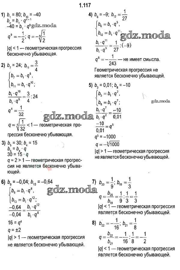 ОТВЕТ на задание № 1.117 Учебник по Алгебре 11 класс Кузнецова