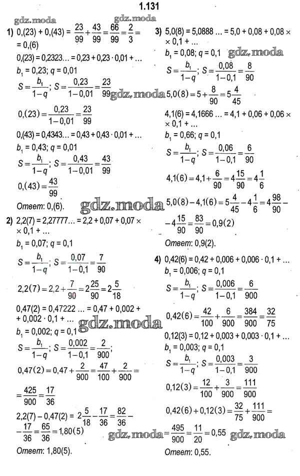 ОТВЕТ на задание № 1.131 Учебник по Алгебре 11 класс Кузнецова