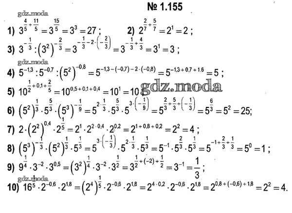 ОТВЕТ на задание № 1.155 Учебник по Алгебре 11 класс Кузнецова