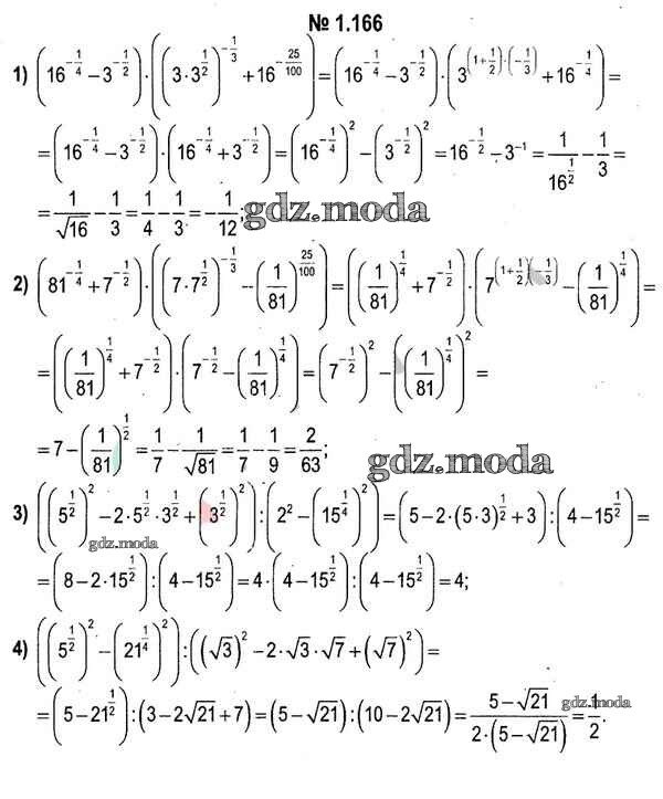 ОТВЕТ на задание № 1.166 Учебник по Алгебре 11 класс Кузнецова