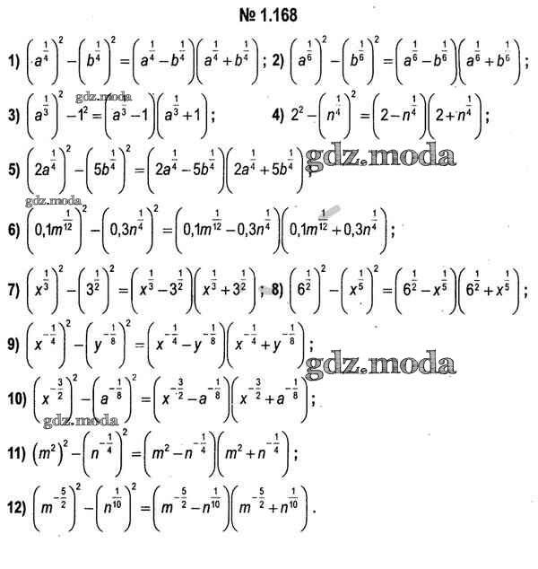 ОТВЕТ на задание № 1.168 Учебник по Алгебре 11 класс Кузнецова