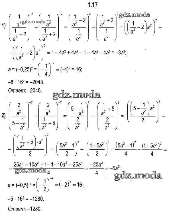 ОТВЕТ на задание № 1.17 Учебник по Алгебре 11 класс Кузнецова