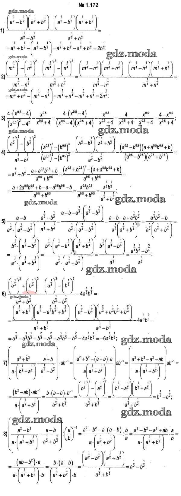 ОТВЕТ на задание № 1.172 Учебник по Алгебре 11 класс Кузнецова