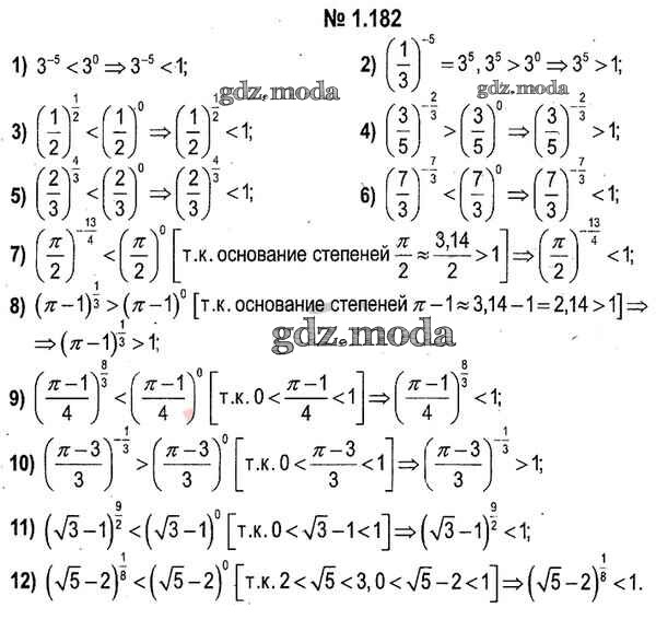 ОТВЕТ на задание № 1.182 Учебник по Алгебре 11 класс Кузнецова