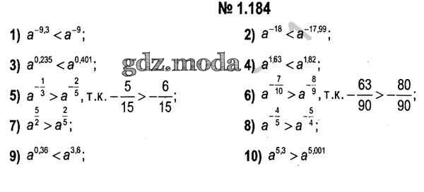ОТВЕТ на задание № 1.184 Учебник по Алгебре 11 класс Кузнецова